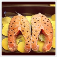 Somon, sağlıklı olmasının yanı sıra bence diğer bir güzel yanı pişince evde balık kokusu olmaması:) Özellikle fırında pişince hiç kokmuyor diyebilirim. Son olarak bir öneri, Norveç Somonu artık her yerde satılan bir balık. Siz daha çok büyük marketlerdekini tercih edin. Renklerine ve kokusuna dikkat edin. Çok yoğun bir balık kokusu alırsanız almayın, çünkü somon yoğun balık kokusu olan bir balık değil ve kokmaya başladıysa bozulmaya başlamış demektir. Özellikle, Carrefour, İkea, Migros,Champion, Metro ve Real gibi marketlerdeki balıklar, Norveçten ithal gelen ve dondurulmamış balıklardır. Buralarda satılan balıkların tedarikçisi Alfarm (Alarko’nun yan kuruluşu) adında bir firma ve balıklar Norveç’te özel çiftliklerde yetiştirilip kesiliyor ve soğutucu araçlarla 3-4 günde Türkiye’ye giriş yapıyor ve 1 günde tüm marketlere ulaşıyor. Gelen balıklar da en geç 1 haftada tükeniyor. Böylece her zaman taze olarak bulmak mümkün. Tarife gelince, bu tarif, ailemizin en küçük üyesi kız kardeşim Selin’den… Mutfağa girdiğinde inanılmaz lezzetli yemekler yapabilen ve çok gelişmiş bir damak tadına sahip şanslı insanlardan biri , benim de rehberim ve ailemizin kadrolu çeşnicibaşısı 🙂 O yüzden tavsiye ediyorum, bu tarifi mutlaka deneyin.. Keyifle pişirmeniz dileğiyle..