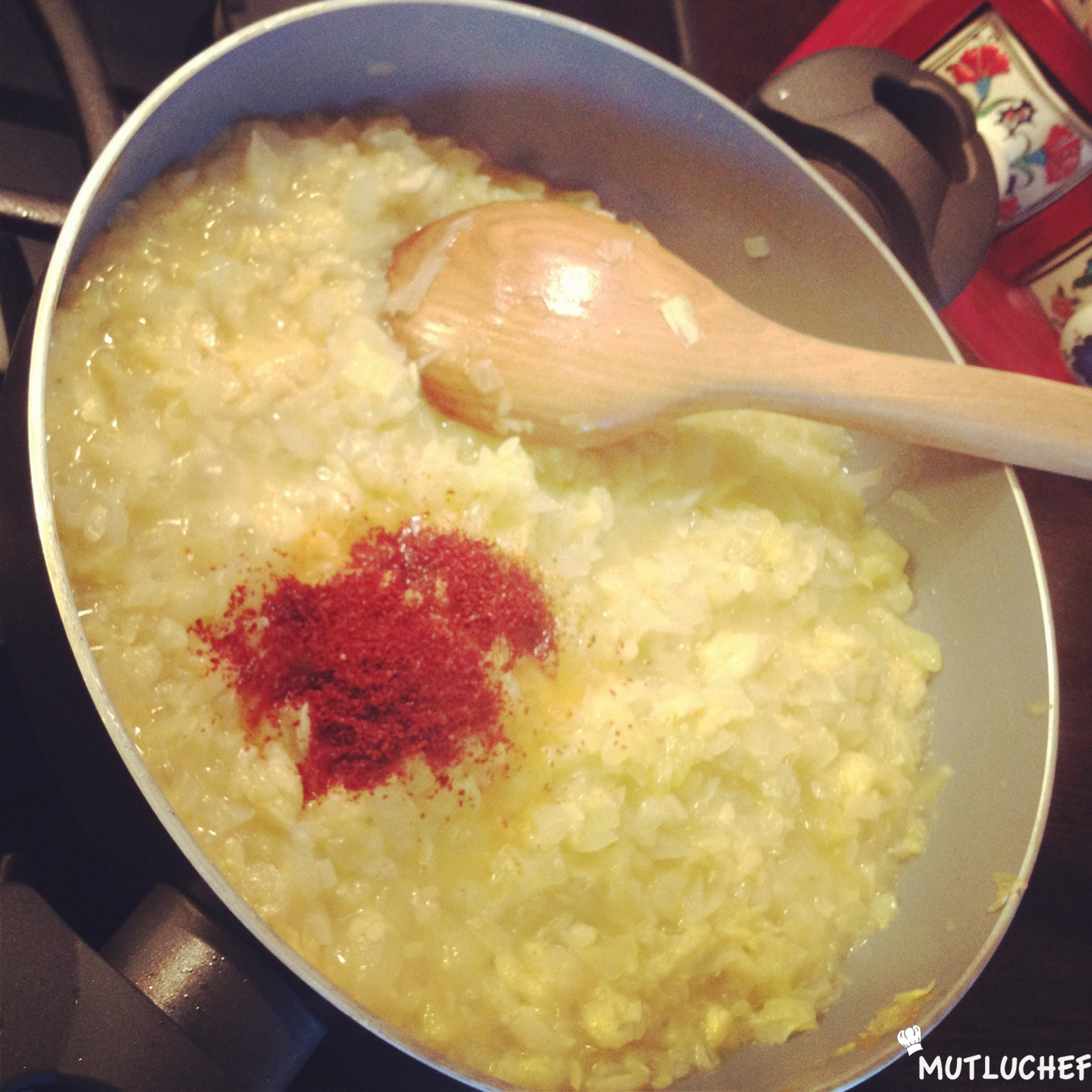 - 1 çorba kaşığı kırmızı toz biber veye pul biber