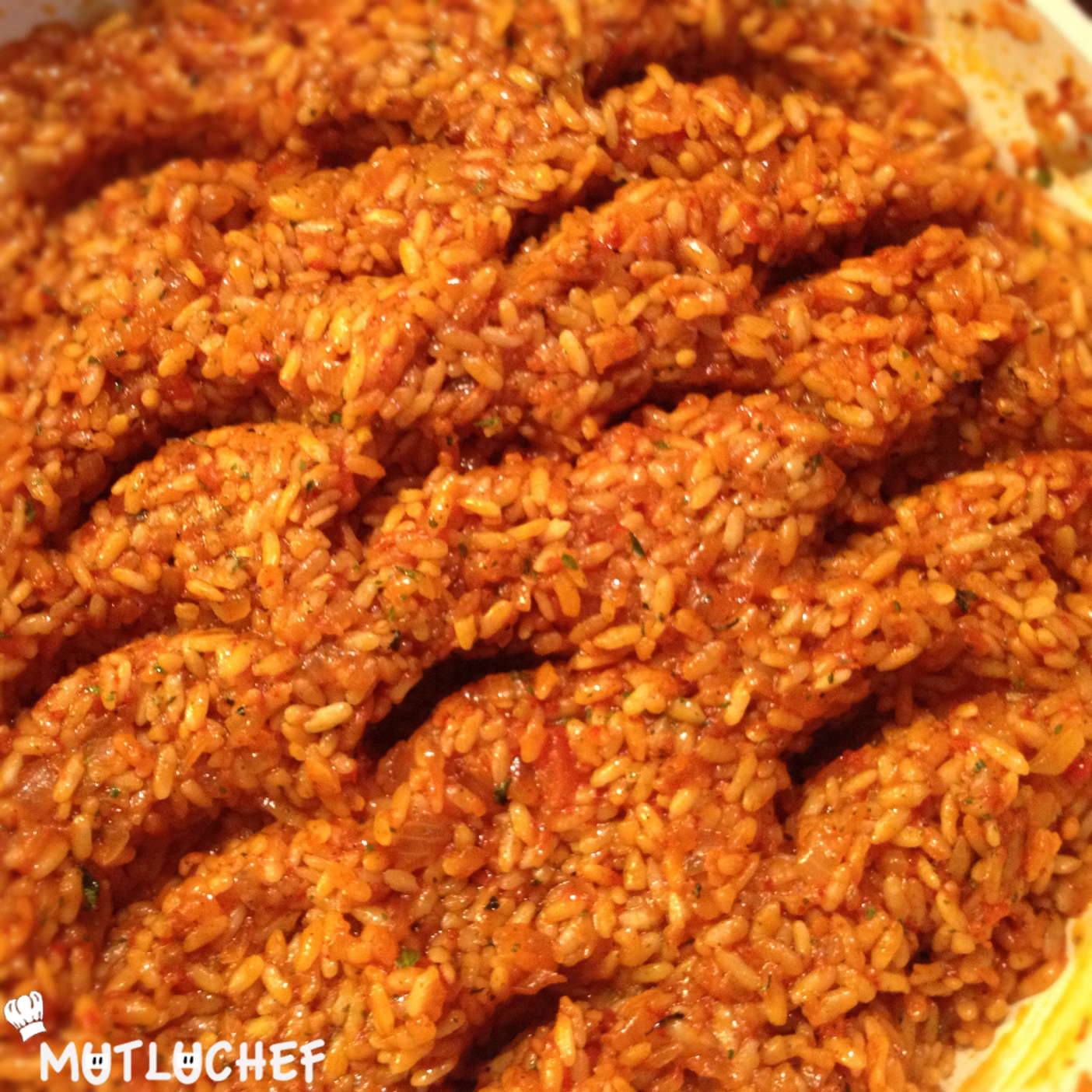 Dolmaların içi için pirinçlerin suyu berraklaşana kadar iyice yıkayın ve süzülmeye bırakın. Soğanları ve sarımsakları soyun ve olabildiğince küçük doğrayın. Domatesleri rendeleyin. Tavaya zeytinyağı koyun hafif ısıtın. Soğanları ekleyin. Pembeleşene kadar soteleyin. Sarımsakları ekleyin ve biraz daha soteleyin. Daha sonra pirinçleri ekleyin. Şefaf olana kadar soğan ve sarımsakla kavurmaya devam edin. Rendelediğiniz domateslere biraz su ekleyerek miktarının toplam 1,5 bardak olmalarını sağlayın. Daha sonra bu karışımı soğan ve sarımsaklarla kavrulan pirince ekleyin. Şekeri ve baharatlarını (karabiber, pul biber ve kimyon) dökün. En son kurutulmuş nane ve maydanoz ekleyin. Pirinçler suyunu çekene kadar karıştırarak pişirin. Altını kapatın ve soğumaya bırakın.