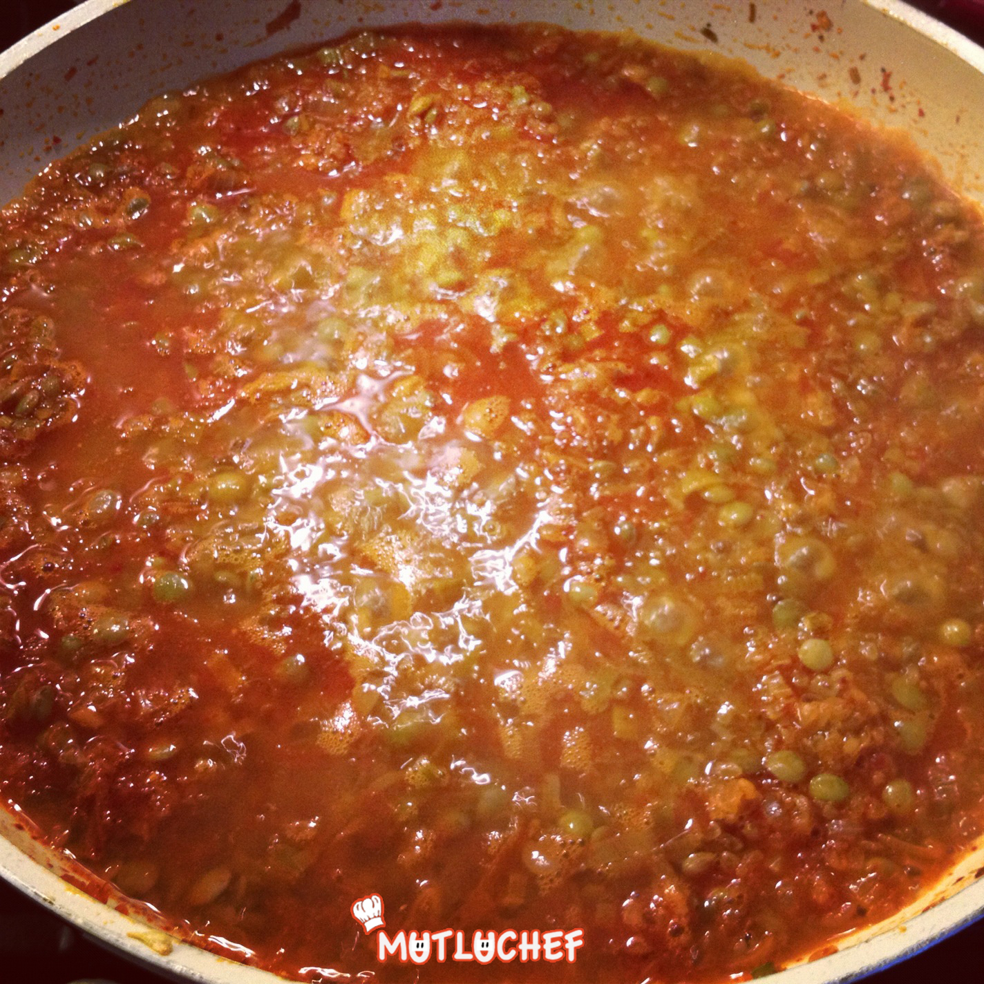 Haşlanmış mercimekleri ekleyin ve ara sıra karıştırarak bir süre daha kavurun. Suyu kaynatın. Bulgurunuzun cinsine göre 3 veya 3,5 bardak kadar sıcak suyu ekleyin ve ağzını kapatarak pişirin. Suyunu çekince ocağı kapatın ve 15 dk. dinlendirerek servis yapın.
