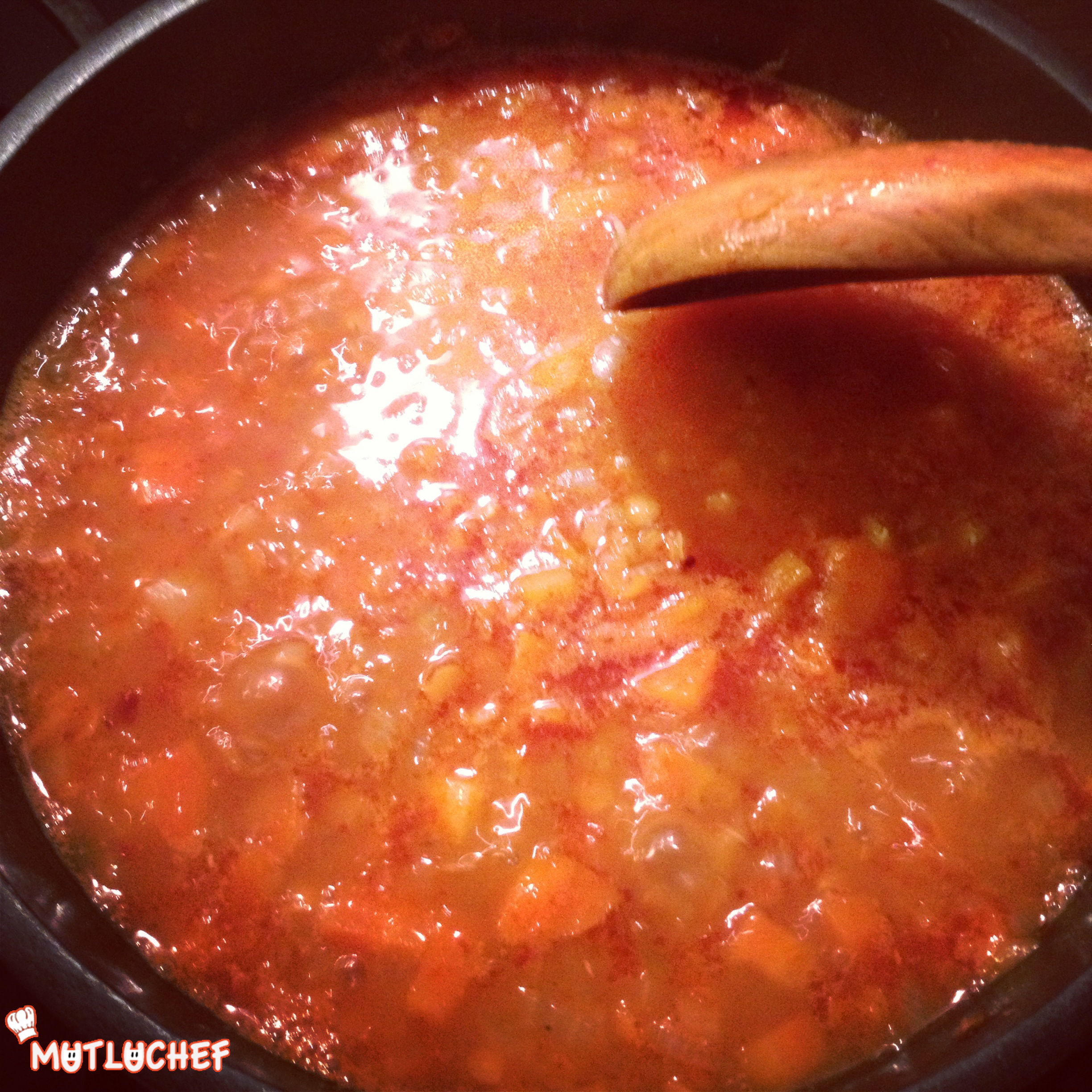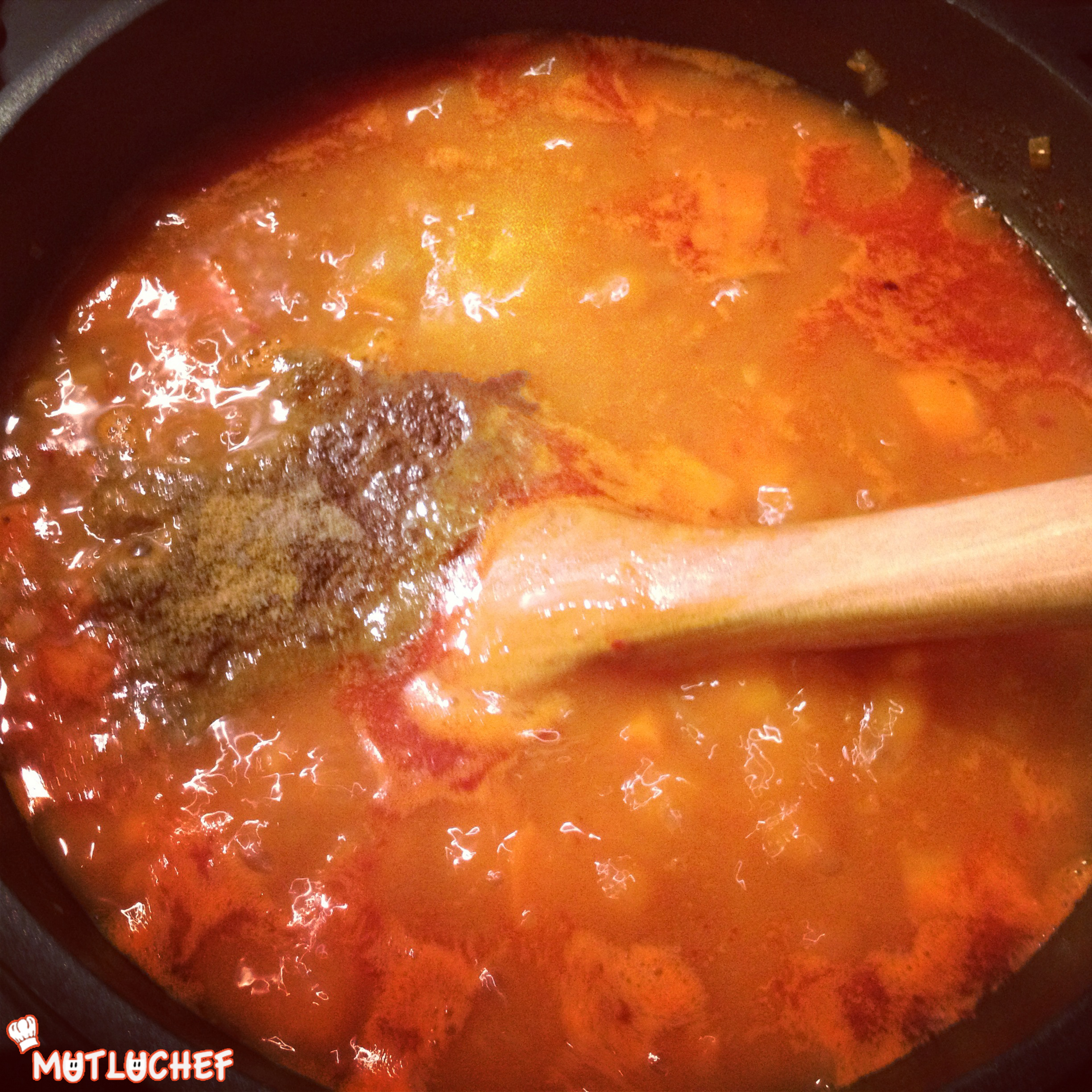 İşte bu aşamada tercihinize bağlı olarak ve tabi ki bulabilirseniz doğranmış sebze kurularınızı (ben pazardan alıyorum, beypazarından geliyor) ekleyin. Baharatlarınızı katın ( 1 tatlı kaşığı kimyon, 1/2 çay kaşığı karabiber, bir tutam tuz). 5 dk. daha kaynatın ve El blender’ından geçirin.