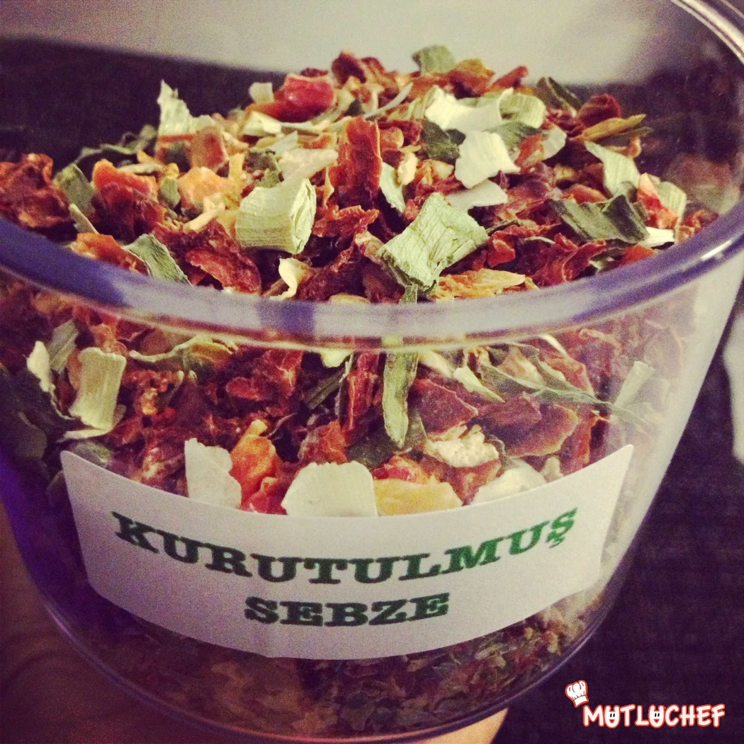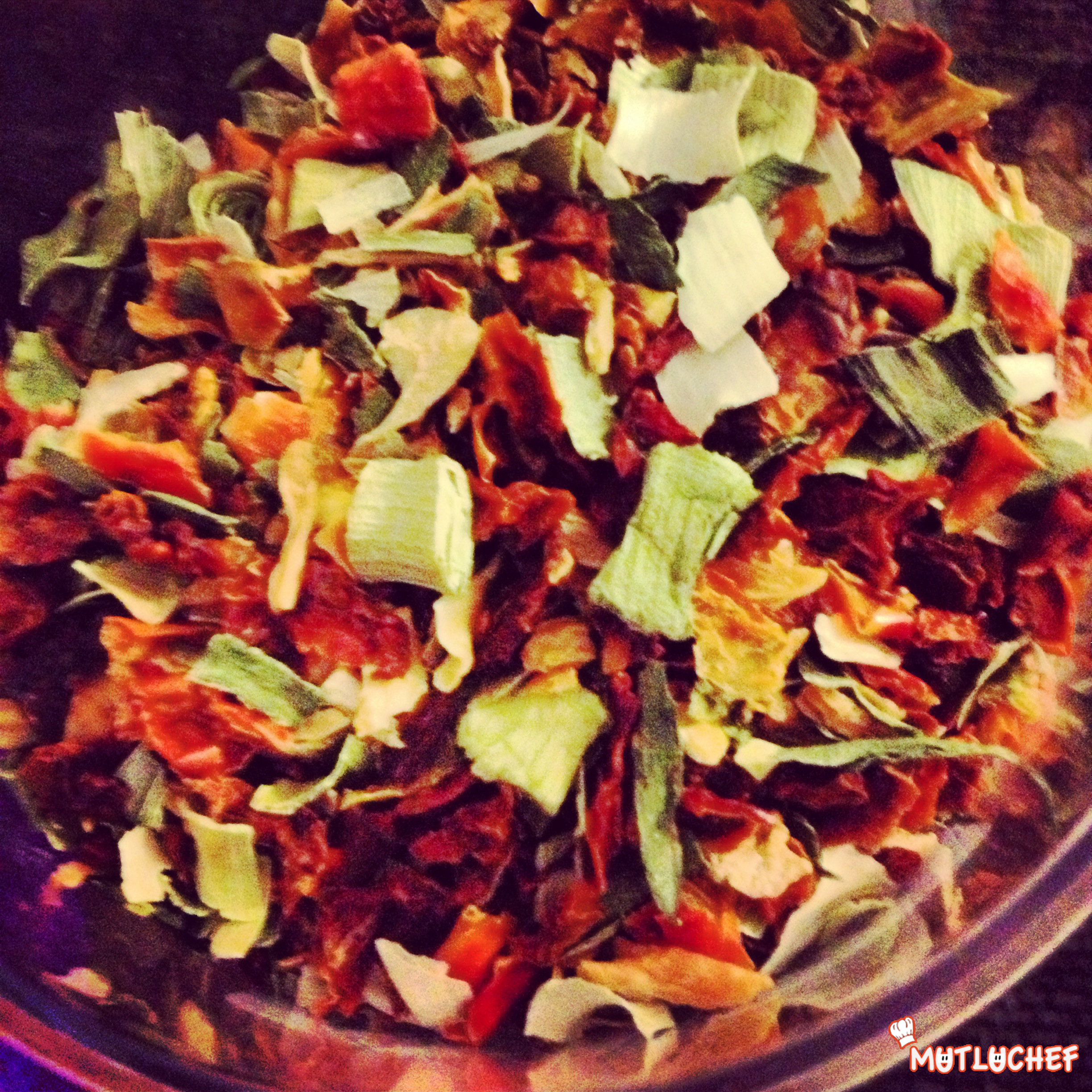 - 1 yemek kaşığı karışık kurutulmuş sebze (pırasa, kereviz, domates ve biber)